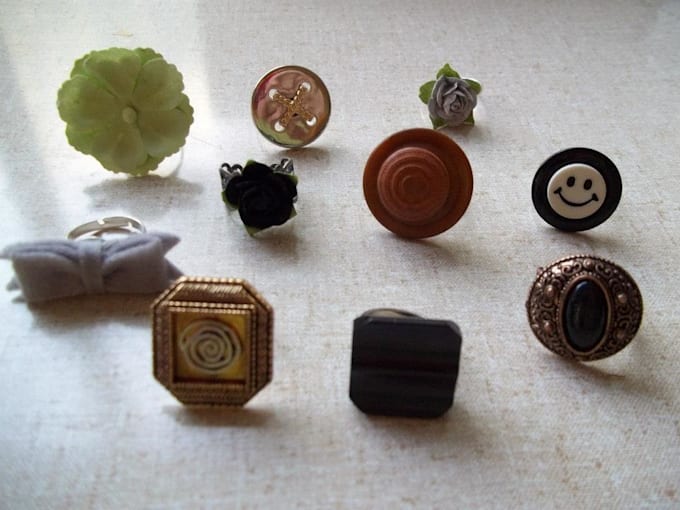 js-gig-main-desc ">The rings in the photo are for examples only. Most of my button rings are one-of-a-kind items, so yours will vary. See the instructions below for suggestions and I will do my best to make you a ring you will loveReviews
