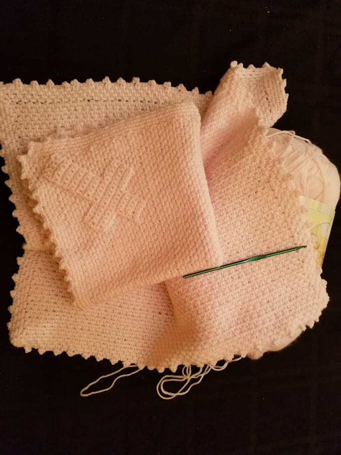 js-gig-main-desc ">baby blanket, 42 inches by 52 inches, in any 100% acrylic yarn color. Blankets are single crocheted then bordered in the same color.