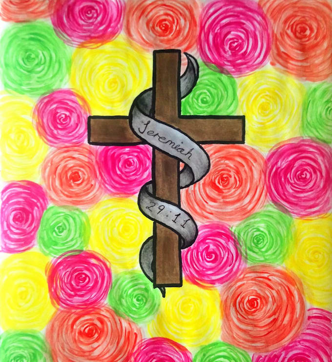 I will paint the Bible book, chapter and verse of your choosing onto a cross. The background of the painting will be roses, in any colors you would like, and you can also choose the color you would like for the cross itself.The painting will be sent in digital format, so you can print it or use it as a screensaver etc. Once it is sent to you, you can do whatever you would like with it :)
