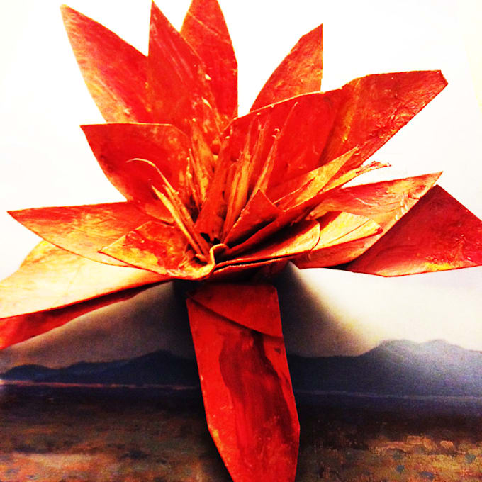 Hand made lotus lily from paper. Three-dimensional art piece with 3 layers of lotus petals, hand-painted and finished with a high gloss.