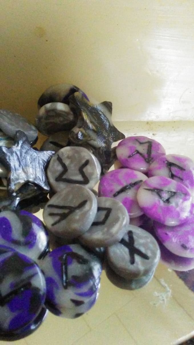 Custom created clay runes for divination, decoration, and novelty.Any colors that your heart desires!! (up to three body colors, plus the rune inscription color).