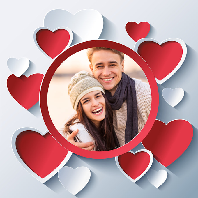 You can send me your image and I will put this attractive frame with hearts around it.